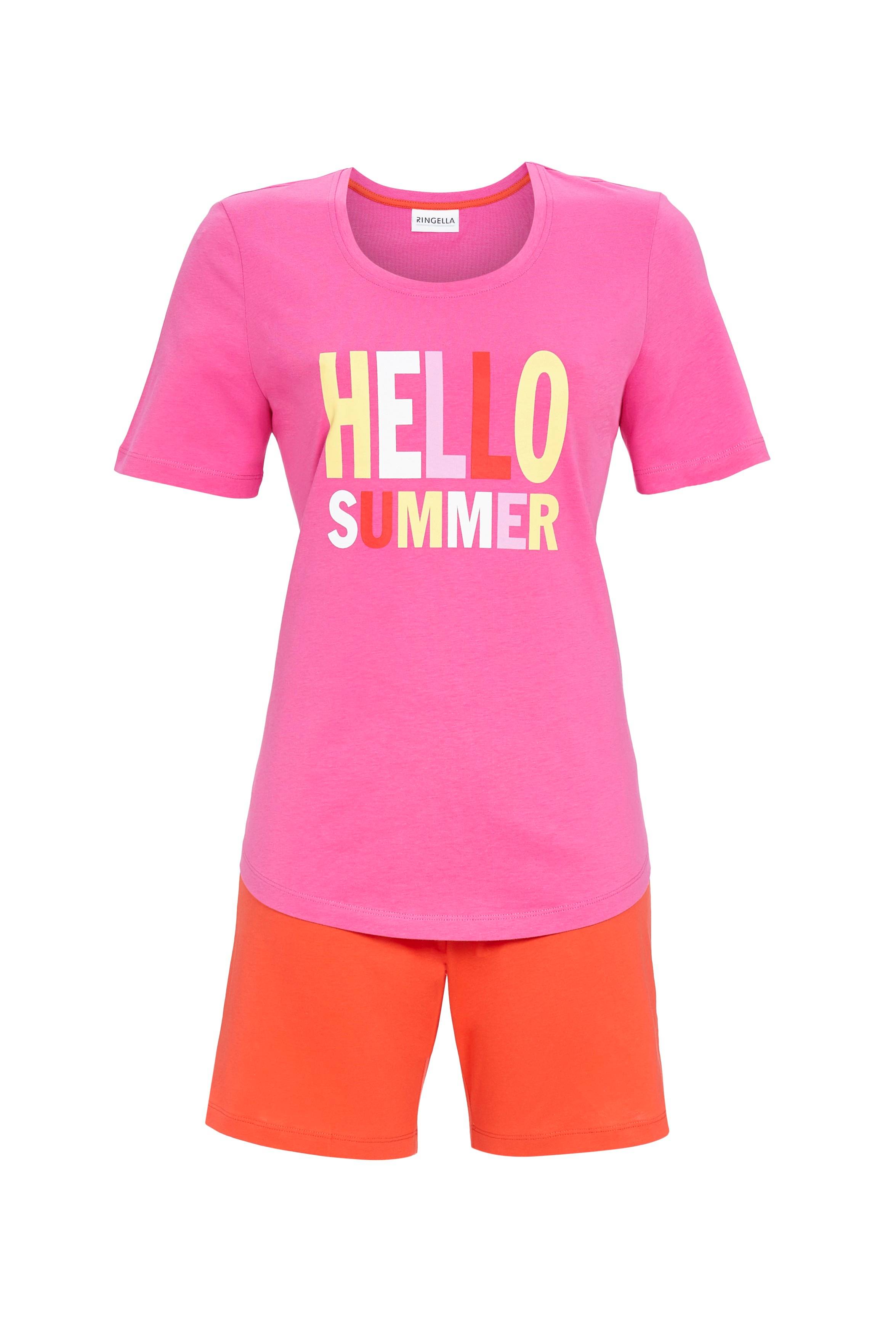 Besonders weicher, anschmiegsamer Single Jersey aus reiner Baumwolle in aktueller Trendfarbe stellt diesen Kurzpyjama ins rechte Licht. Mit einem Letterprint auf dem Vorderteil wird der schöne Look unterstrichen. Die Shorts in Kontrastfarbe ist eine schicke Ergänzung. Ein perfektes Teil für warme Sommernächte.