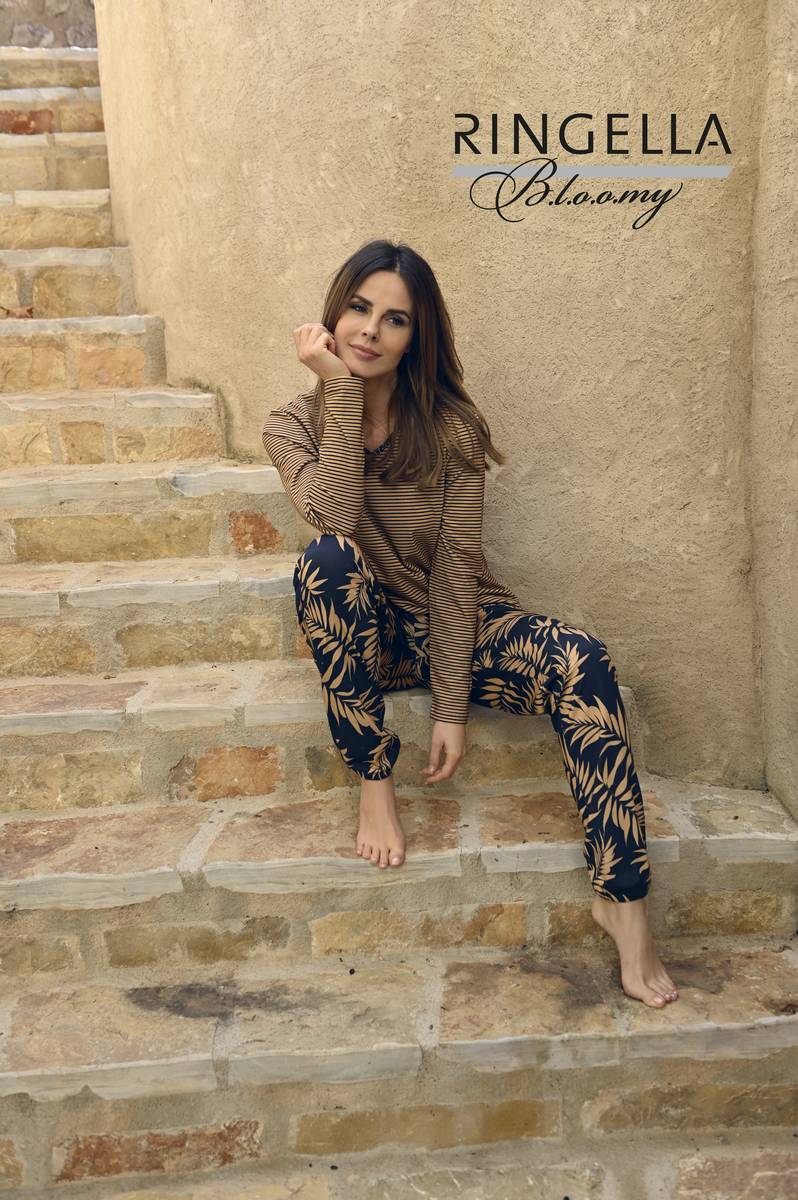 Das T-Shirt mit Langarm ist ganz aktuell in einem feinen Ringeldessin gearbeitet. Der Kontrastpaspel aus einem Ethno-Dessin am V-Ausschnitt hebt die schöne Optik gekonnt hervor. In warmen Farben ein schickes Modell für den Herbst. Hergestellt aus hochwertiger Baumwolle mit Elasthan in einer Single Jersey-Elasthan-Qualität, ist für ein angenehmes Tragegefühl gesorgt. Der Elasthananteil bietet Formstabilität. Zum Kombinieren findet sich schnell eine Hose in unserer Bloomy-Kollektion.