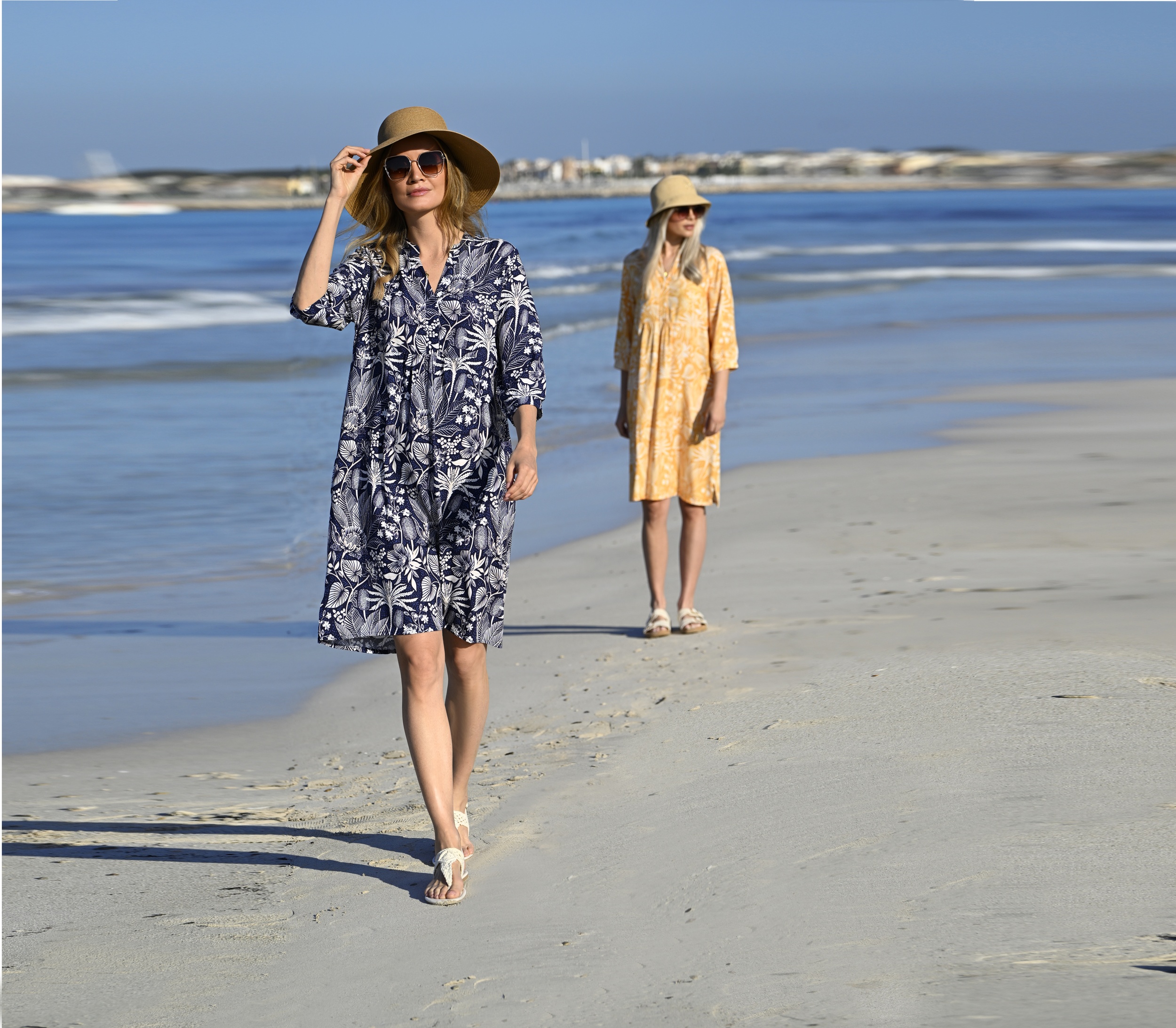 Dieses wunderschöne Tunikakleid im Blumendessin ist ein absolutes Must-Have für Ihre Garderobe. Der V-Ausschnitt sorgt für eine schmeichelhafte Silhouette, während die 3/4-Ärmel ideal für Übergangszeiten sind. Praktische seitliche Eingrifftaschen bieten nicht nur Funktionalität, sondern auch einen lässigen Touch. Der Saum mit Seitenschlitzen verleiht dem Tunikakleid eine moderne Note und steht für Bewegungsfreiheit. Hergestellt aus hochwertiger Viskose in Voile-Qualität, garantiert das Tunikakleid ein angenehmes Tragegefühl und eine luftige Leichtigkeit, die perfekt für warme Tage ist.